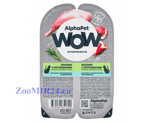 AlphaPet Wow для кошек Кролик/Потрошки в соусе с чувствительным пищеварением, 80г (блистер)