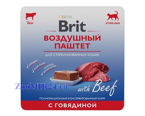 Brit Premium воздушный паштет для кастрированных кошек Говядина 100г, (ламистер)Увеличить
