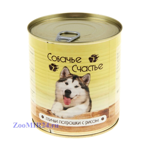 Консервы для собак Собачье счастье Птичьи потрошки с рисом